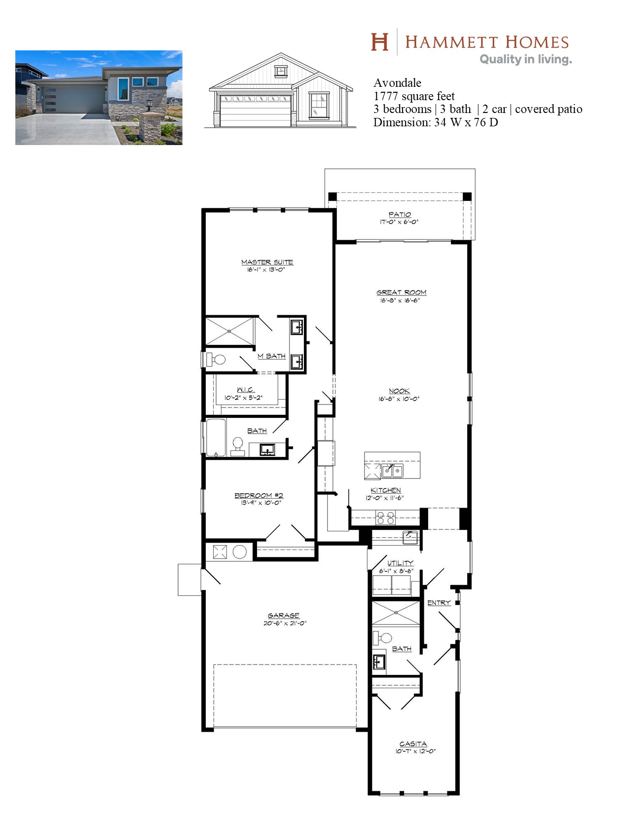 Welcome to the Avondale by Hammett Homes! This home features attention to detail big and small. It starts as you enter the home with detail trim work to great you and your guests. The kitchen is open and perfect for entertaining with extensive cabinets perfect for multi-tasking. The master retreat features an amazing space and details. The spa like bath features Hammett Homes signature chic back-lit mirrors and large tile walk in shower.