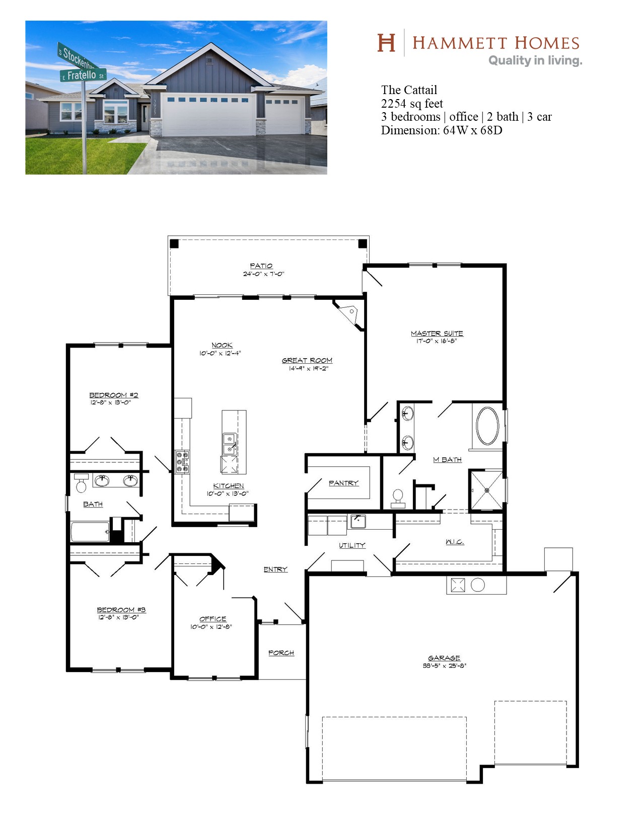 Hammett Homes presents The Cattail. The interior design has impeccable taste throughout. A very spacious great room for entertaining guests, large master suite with a large walk in closet connected to utility room. Large glass sliding doors exit to a back yard and large covered patio. Exquisite corner fireplace. Accent LED lighting at fireplace mantle chic back lit floating mirrors in master. Bosch double oven, cooktop, island micro & large walk in pantry! 3 bedrooms plus office or 4th bed option.