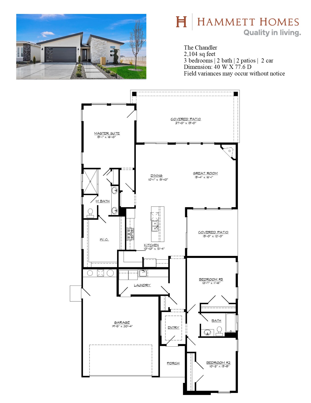 Hammett Homes is proud to present the award winning Chandler, boasting 2104 square feet of luxurious living space. This beautiful home features 3 cozy bedrooms and 2 modern bathrooms, providing ample space for families of all sizes. The 2-car garage ensures that your vehicles are secure and protected from the elements. One of the coolest features of this home is the 2 patios, which provide the perfect spots for outdoor entertainment and relaxation. Whether you're hosting a summer barbecue or simply enjoying a cup of coffee in the morning sun, these patios are sure to impress. With its elegant design and impressive features, the Chandler is the perfect home for those seeking style, comfort, and functionality!
