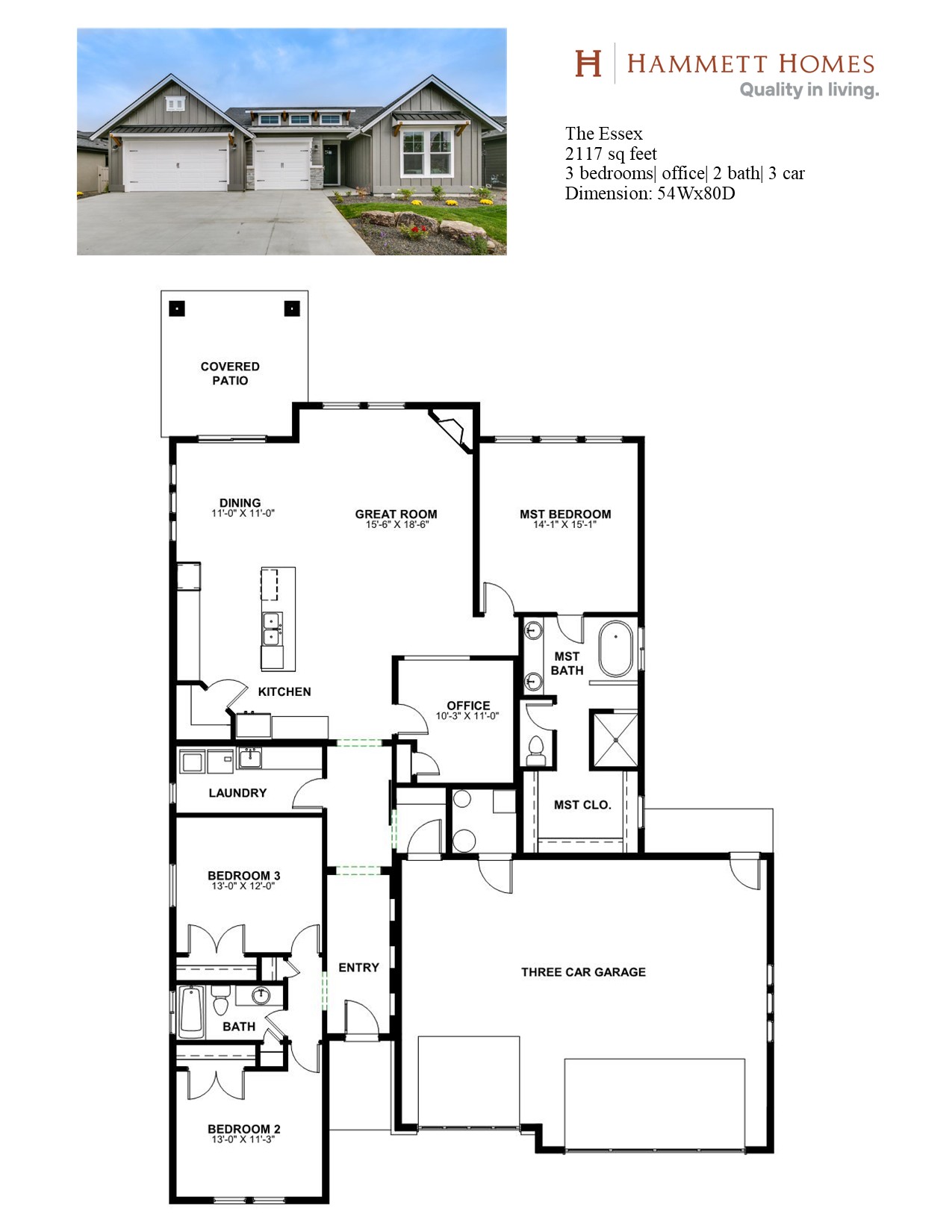 Hammett Homes presents The Essex. This single level features a generous amount of windows for natural light, large open entertainment area and nice sized bedrooms. The large covered back patio is perfect for BBQ's and relaxation and privacy. The spacious master bedroom, walk in closet and bath are a perfect way to unwind at the end of the day!