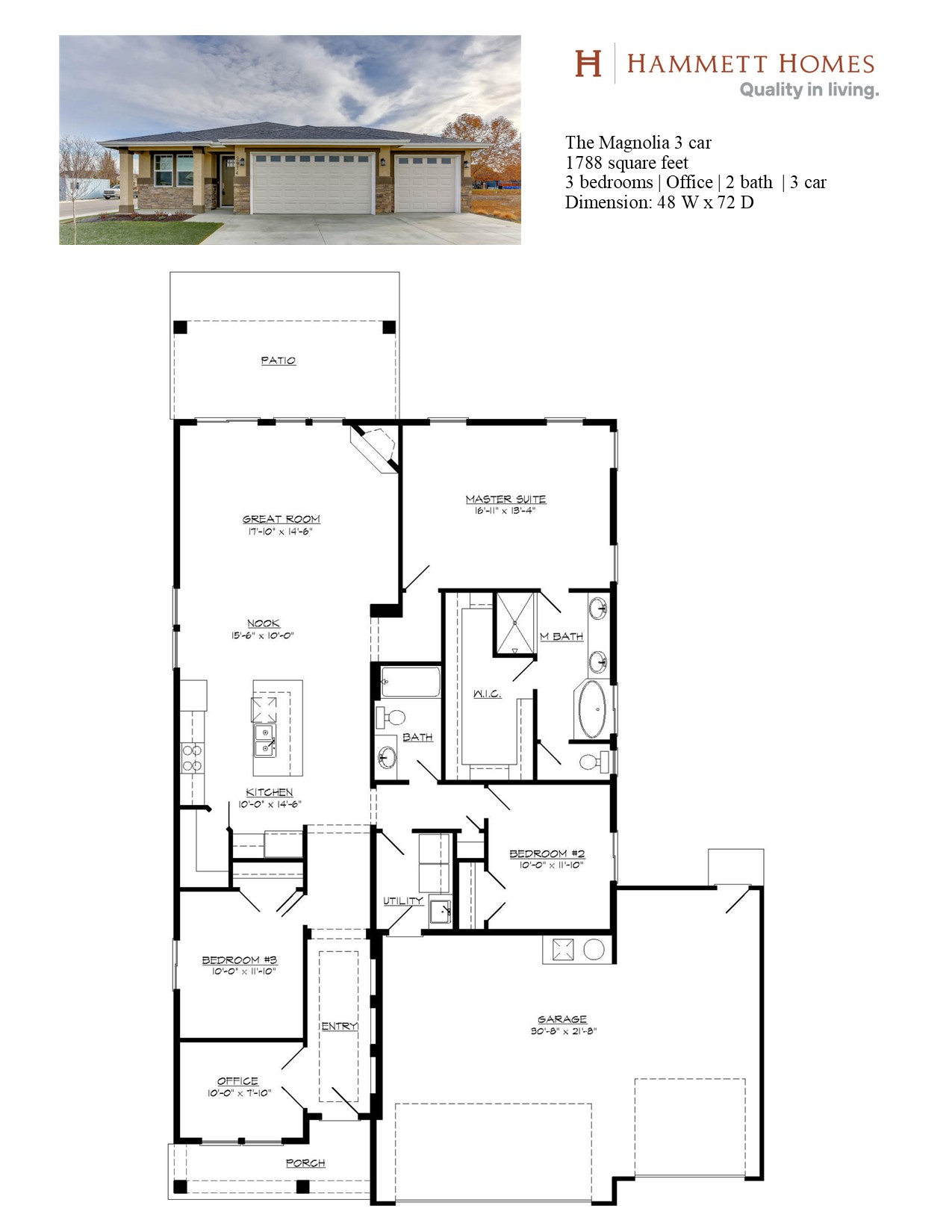 The Magnolia, by Hammett Homes is a fantastic home that feature many elegant details throughout the home. The thoughtful open floor plan features an abundance of windows for natural light, a good amount of storage, a hobby, craft or office space, wide hallways and doors. This home is perfect for the person looking for functionality and low maintenance. Hammett Homes did not skimp on the details on this one. The Magnolia is the complete package!