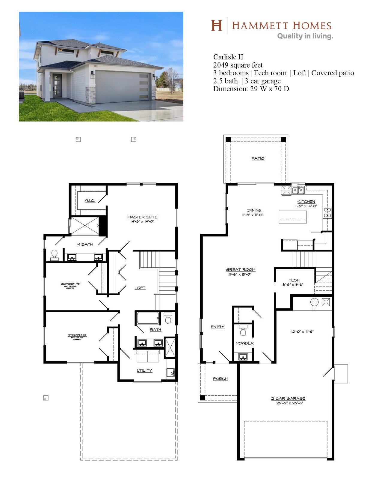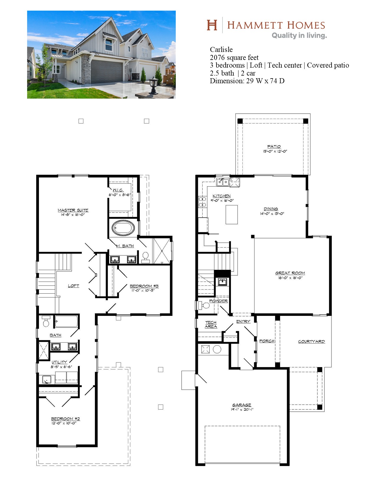 Hammett Homes presents The Carlisle. This homes features a large open great room with kitchen and dining situated for entertaining friends and family. The bedrooms and laundry are located upstairs for convenience. The Carlisle also offers an abundace of outdoor space with a large side entry patio and a rear covered patio. The Carlisle offers quality throughout including Hammett Homes signature back-lit floating mirrors.