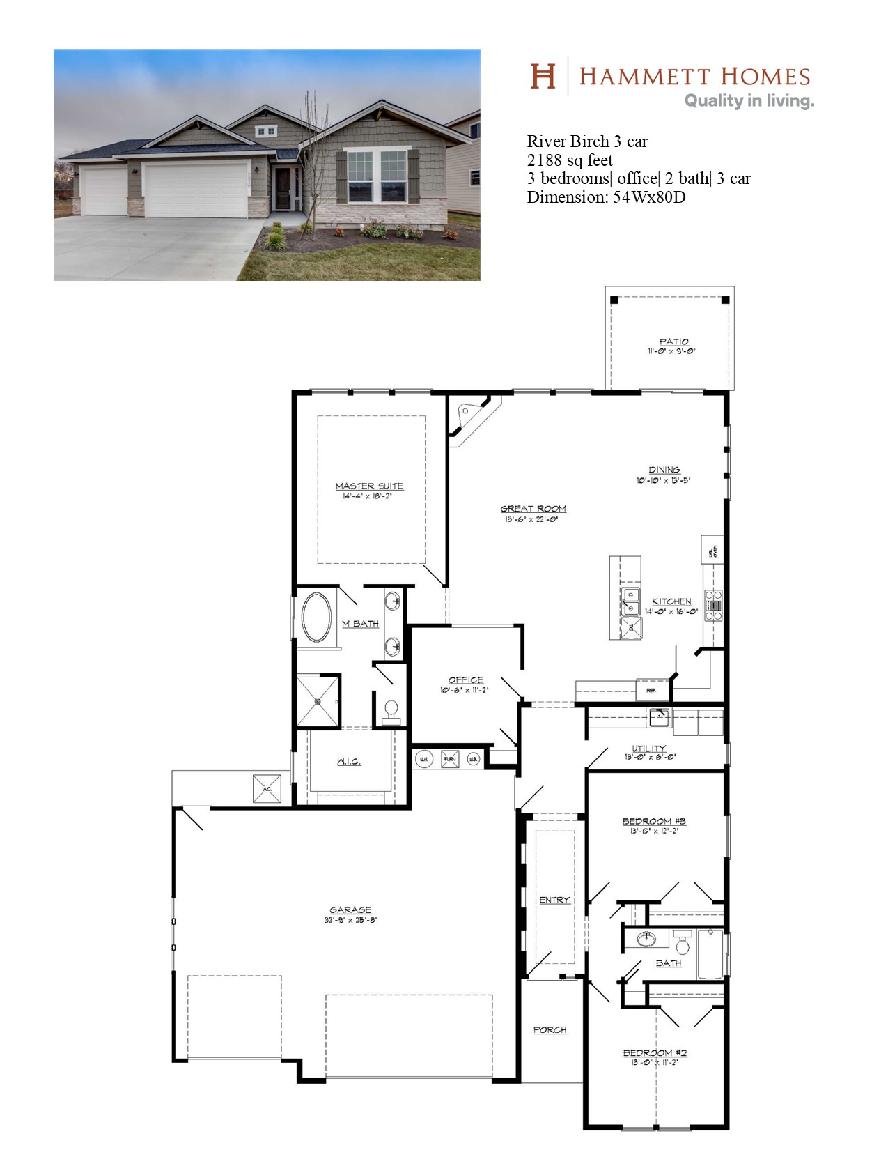 Hammett Homes presents The River Birch. This popular single level home offers top of the line finishes. The kitchen and great room are open and spacious. The master bedroom and secondary bath features Hammett Homes signature chic back-lit floating mirrors. Hammett Homes is proud to be Building Foundations For Life.